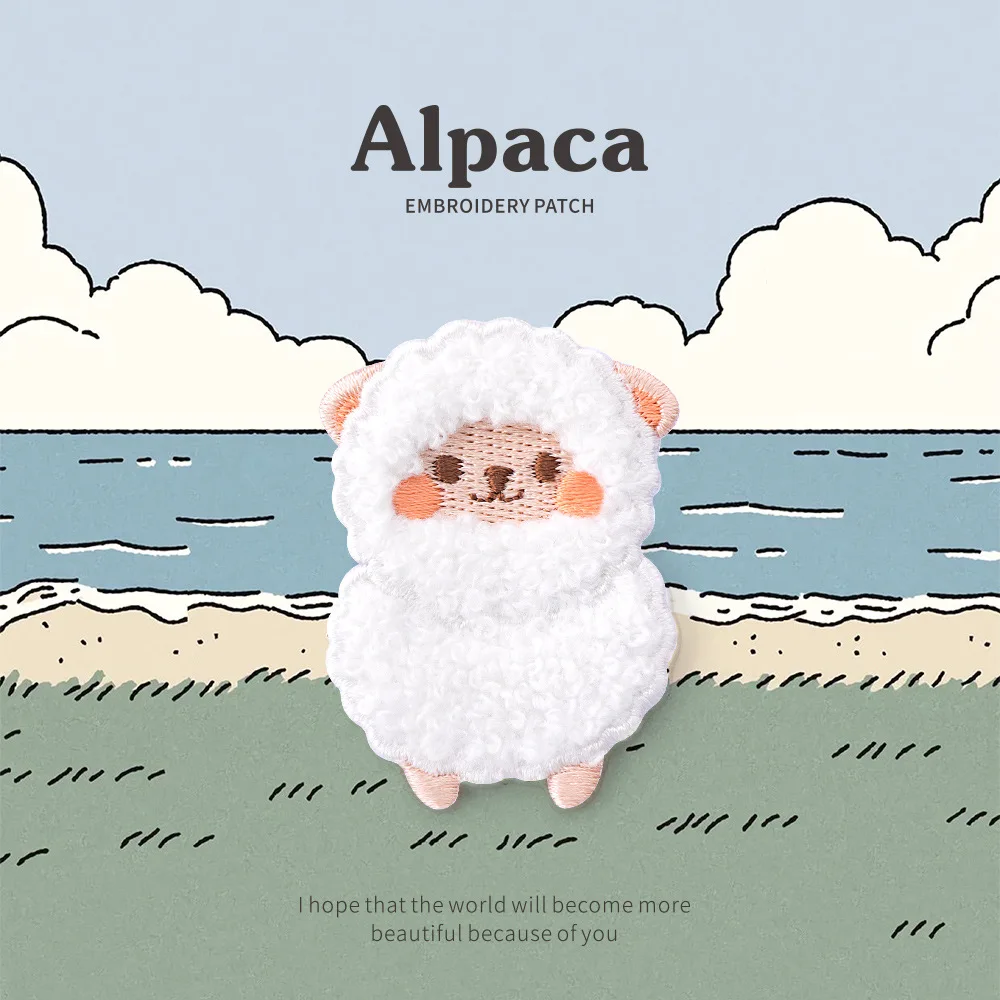 Милый белый плюшевый Альпака вышитый тканевый патч с самоклеющейся модной железной наклейкой украшение для ноутбука