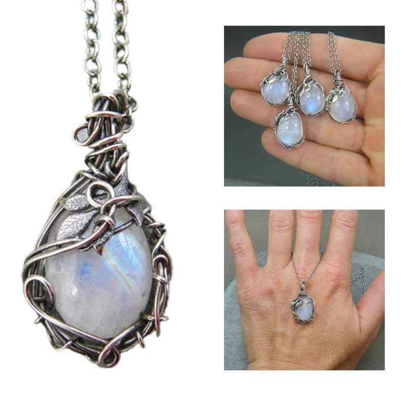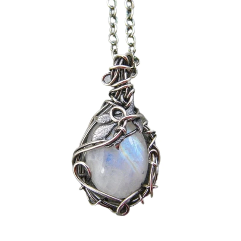 Ожерелье из натурального камня, винтажное ожерелье из лунного камня...