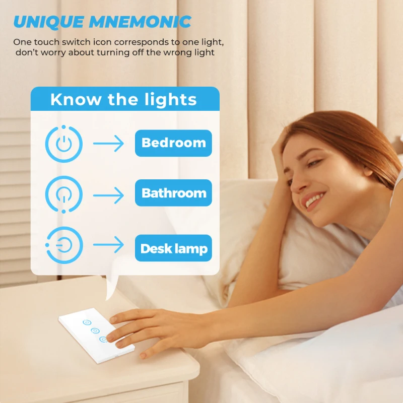 3. Беспроводной переключатель можно разместить на прикроватной кровати, на стекле, на стене и держать в руке. Это очень удобно для пожилых людей,