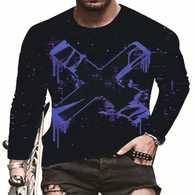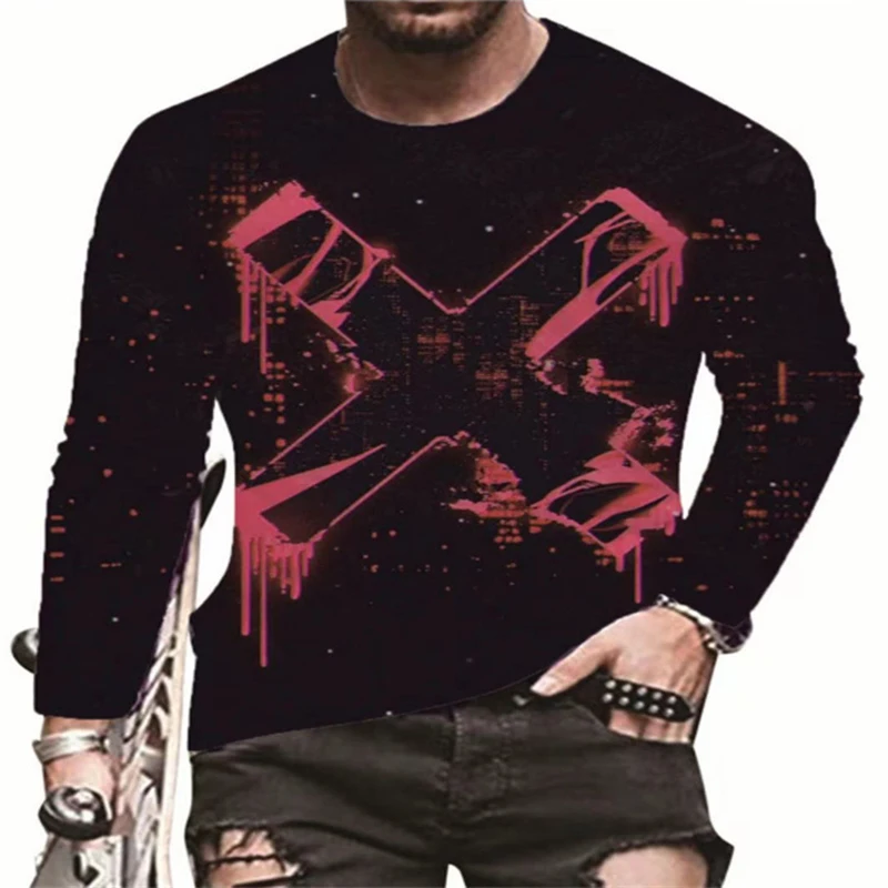 Европейская и американская популярная мужская Спортивная футболка для отдыха с 3D Цифровым принтом уличная трендовая футболка с 3D принтом и длинным рукавом