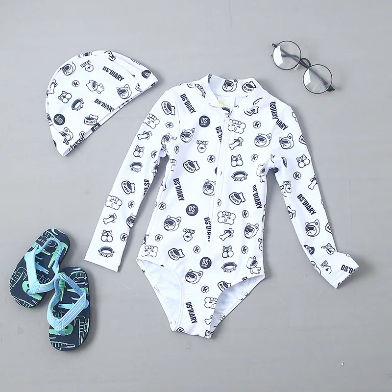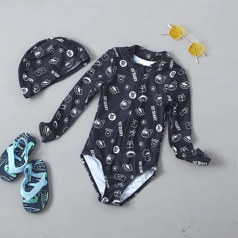 Купальник для мальчиков, слитный купальный костюм с шапочкой, с дли...
