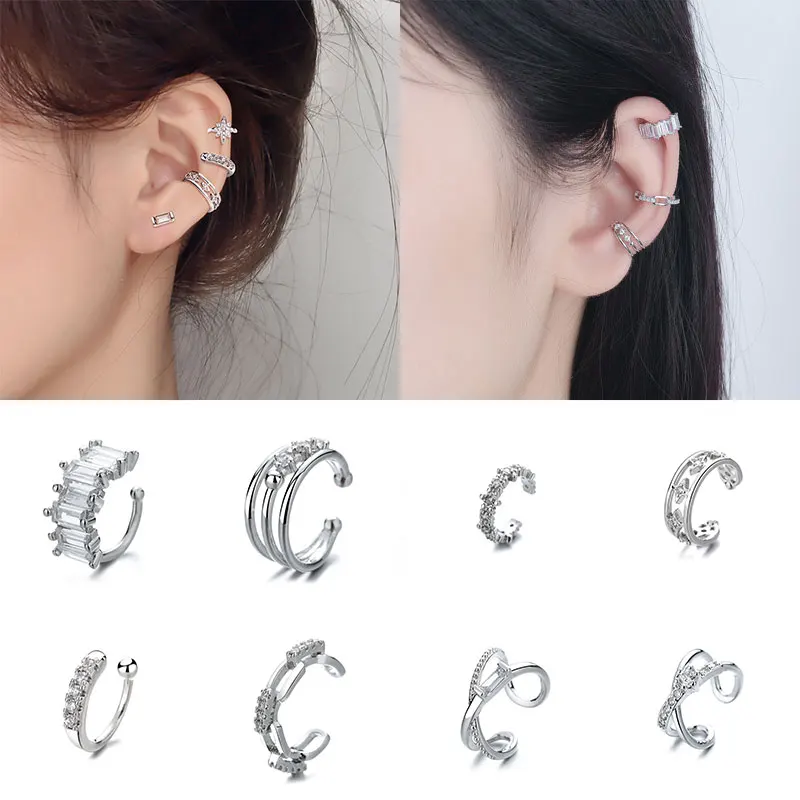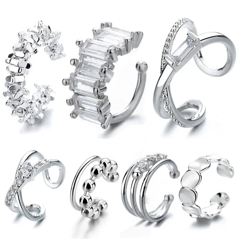 Очаровательные серьги-каффы, серебряного цвета, без пирсинга, ювели...