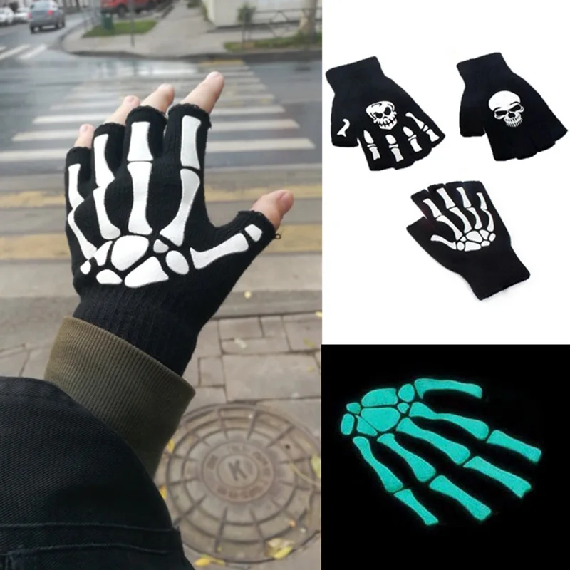 Новинка, перчатки без пальцев, перчатки с полупальцами, унисекс, Рождество, Хэллоуин, скелет, голова, Велоспорт, Нескользящие, светящиеся, теплые, Готические перчатки