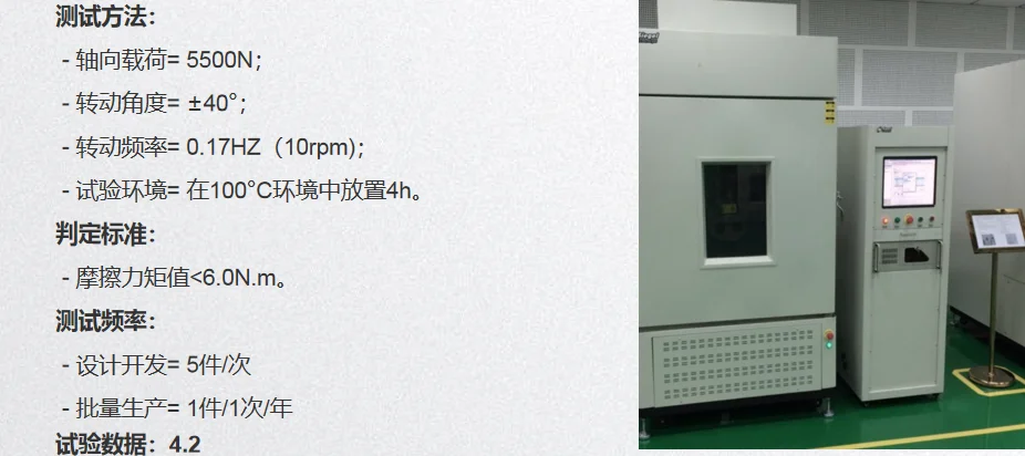 Abnormal noise testaxial 6500N The radial1300N ±40 ° frequency 0.17HZ 60Back to the