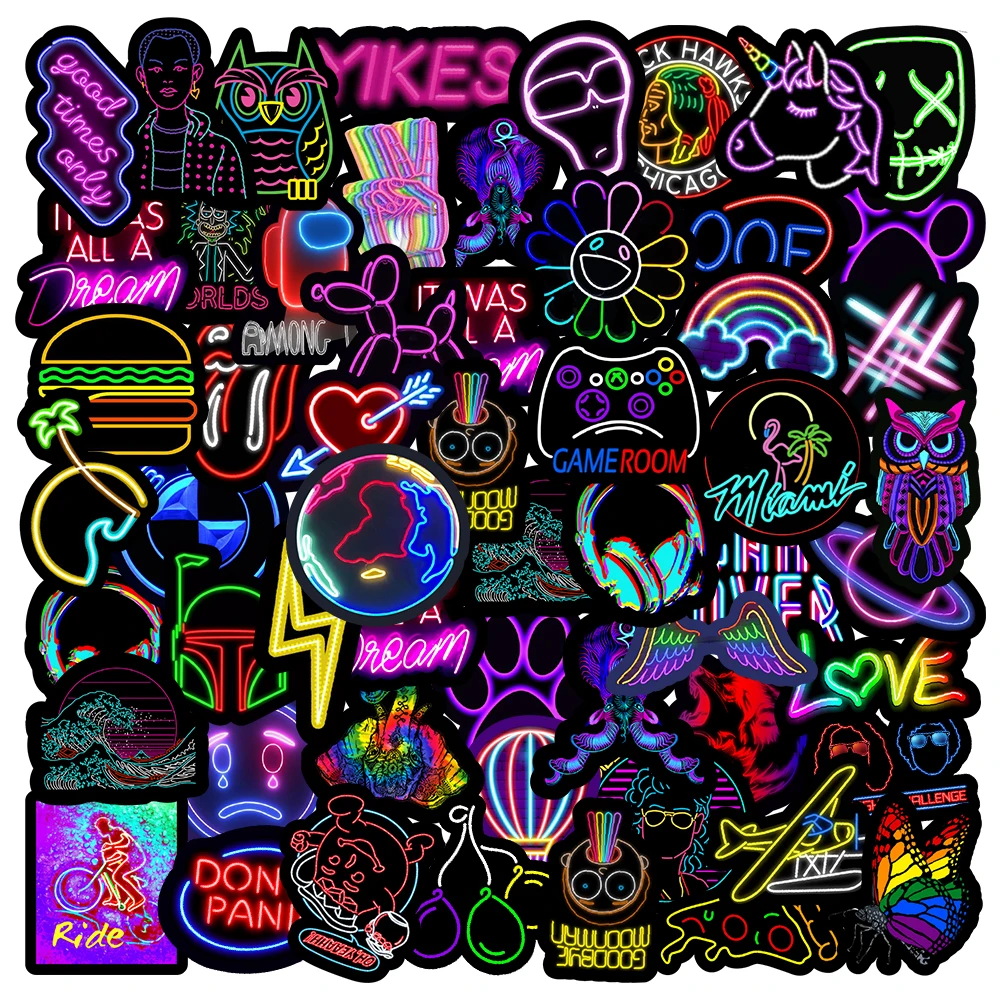 Наклейки 50 шт.упак., крутые неоновые световые граффити для ноутбук...