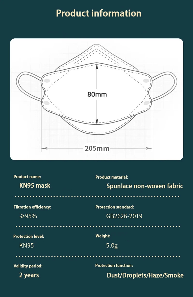 Маска для рыбы KN95 FFP2, маска для взрослых Корейская сертифициров...