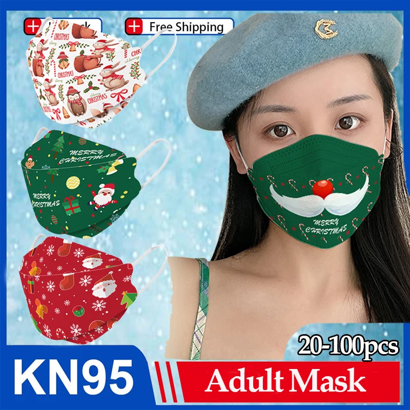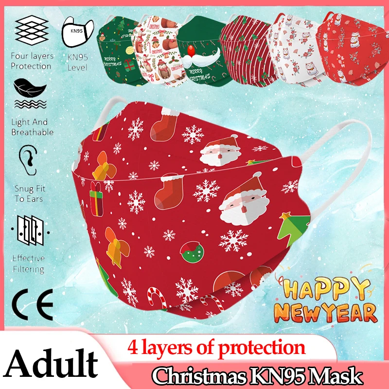 Рождественская маска KN95 для взрослых, 4-слойная Защитная дышащая ...