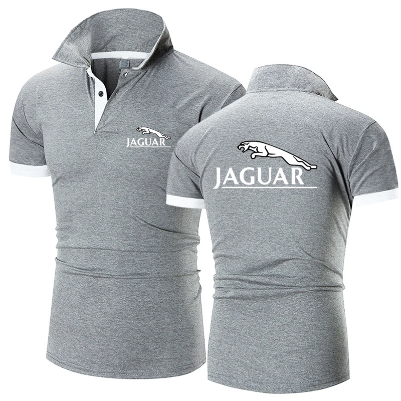 Рубашка-поло мужская с коротким рукавом, модная повседневная сорочка с отложным воротником, логотип Ягуара, настраиваемый логотип, однотонная, лето