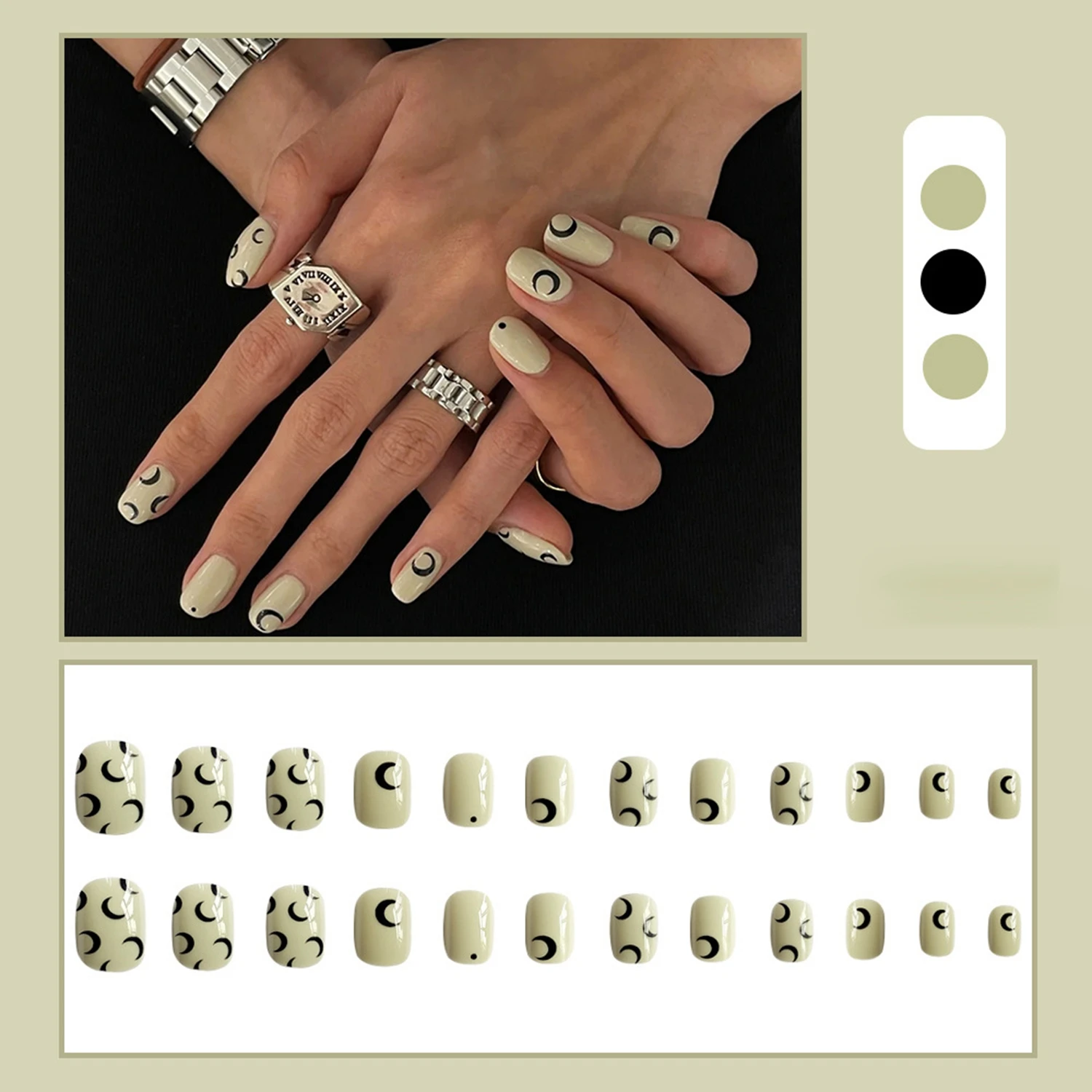 24 шт.кор. французские короткие накладные ногти с лунным дизайном, съемные маникюрные пластыри, накладные ногти с полным покрытием, накладные ногти