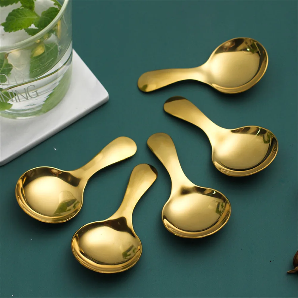 Ложка из нержавеющей стали с короткой ручкой в стиле ретро, ложка для специй, соли, сахара, золотых и серебряных приправ, чая, кофе, кухонные инструменты