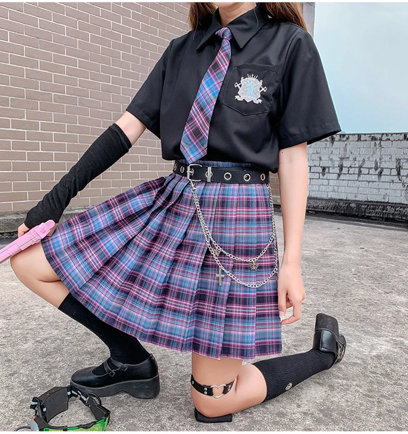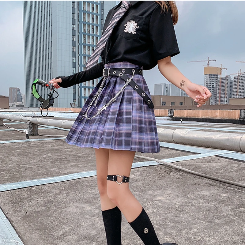Женская плиссированная мини-юбка в клетку, с высокой талией
