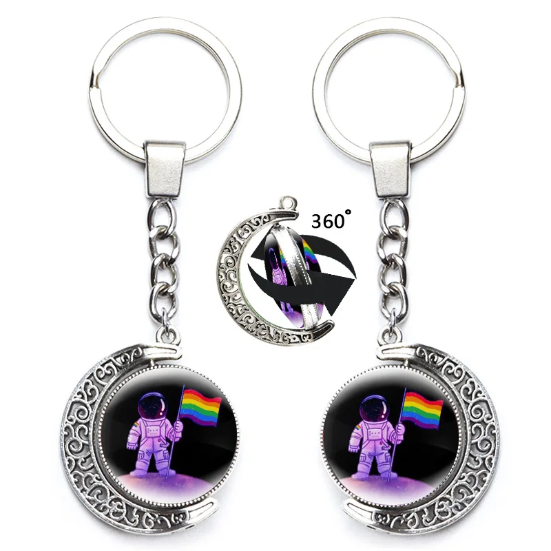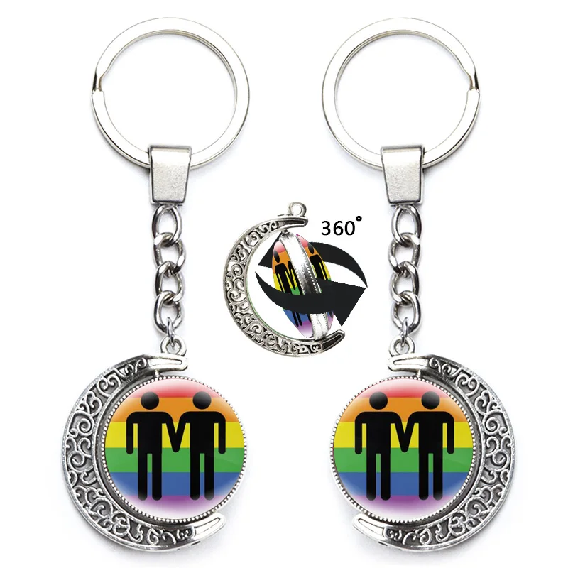 ЛГБТ флаг Радуга Брелоки Подвеска держатель гей Лесбийский бисексуал трансгендер символов брелоки вращение на 360 градусов стекло ювелирные изделия