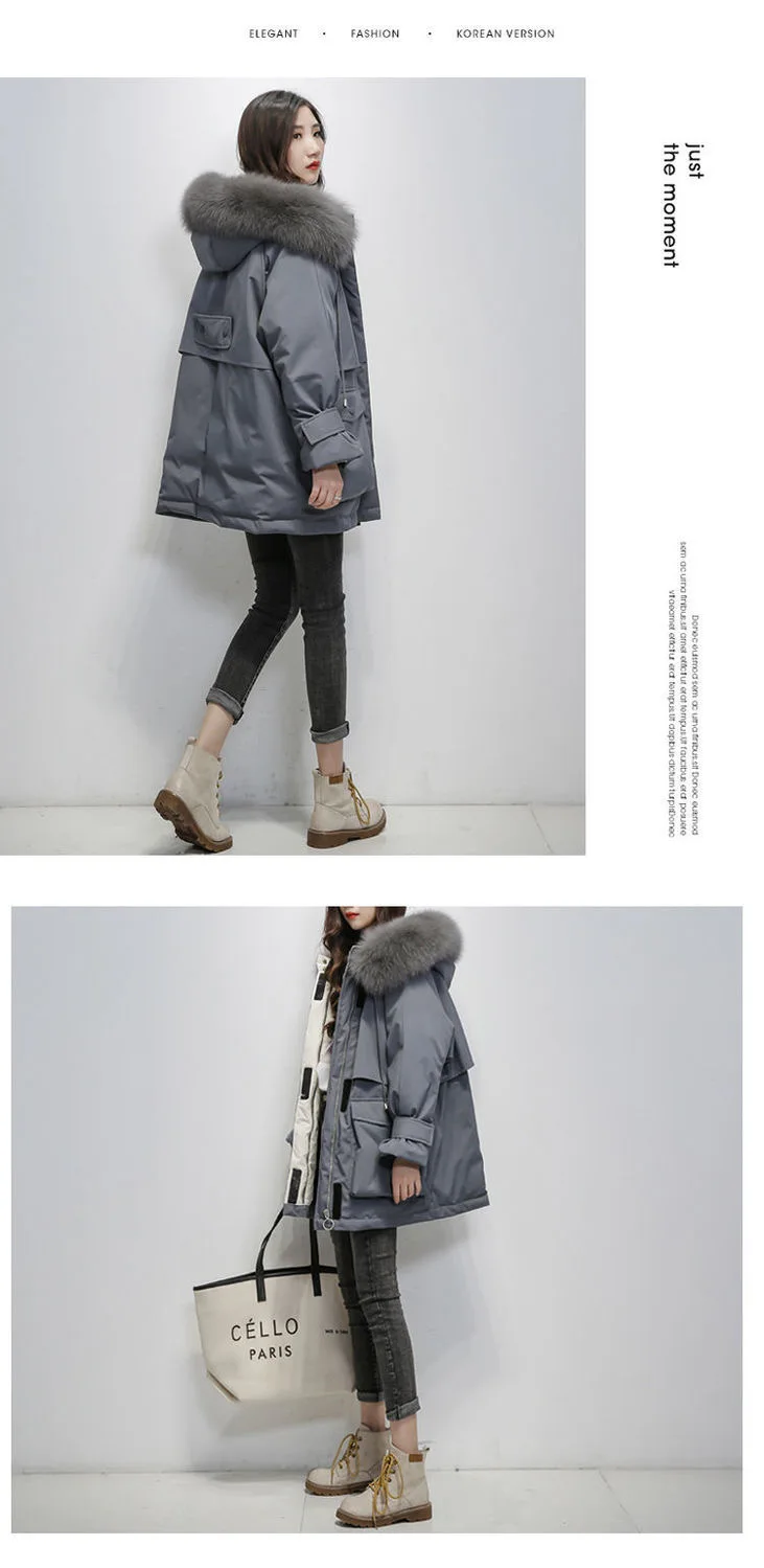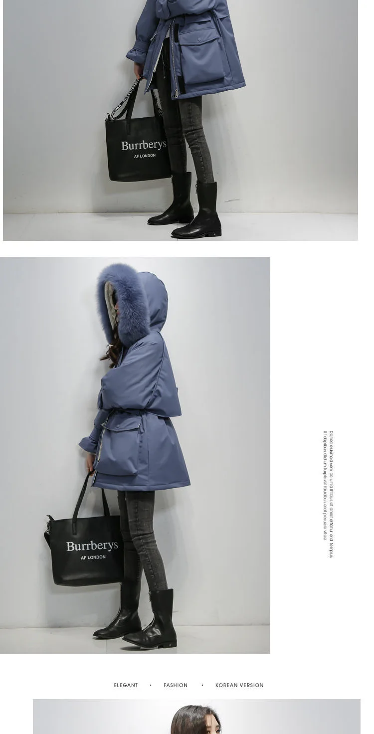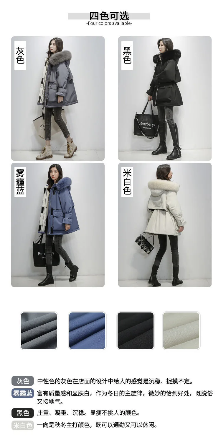 Большая зимняя женская куртка с капюшоном из натурального Лисьего меха, толстые парки на 90% белом утином пуху, теплое зимнее пальто с поясом и завязкой