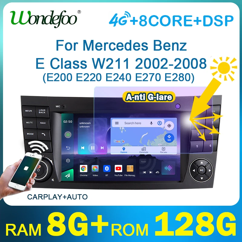 Wondefoo магнитола 2 din android 2дин андройд 10 с экраном автомагнитола экран для Mercedes-Benz E-Class W211, E200, E220, E240, E270, E300, E55, W463, W209, W219, GPS Carplay интеллектуальные 2din магнитофон в машину