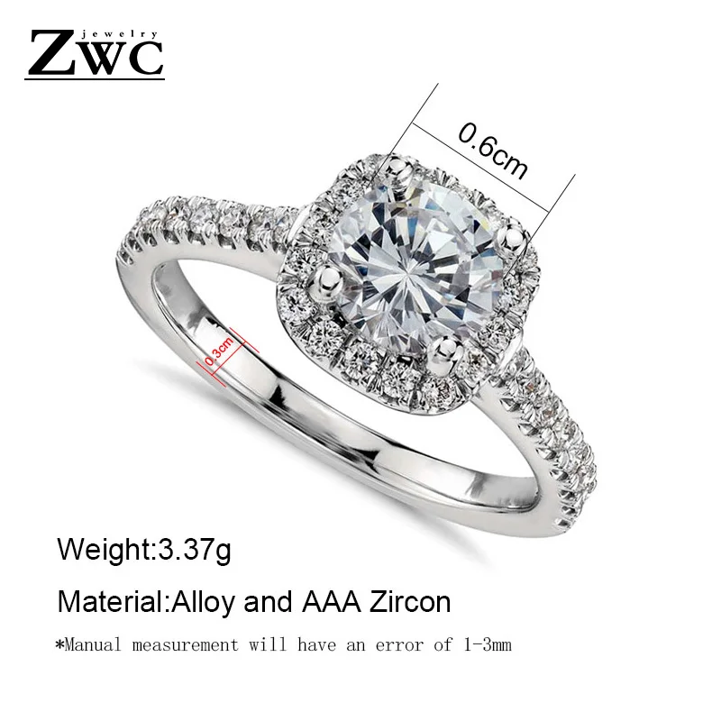 ZWC Роскошные Большие Квадратные Серебряные Кольца для женщин с фиа...