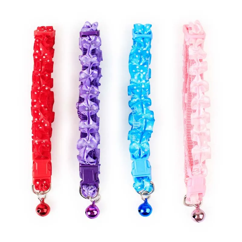 Милый кружевной ошейник для кошек и собак с колокольчиком, регулируемые ошейники с пряжкой, товары для домашних животных, товары для собак, милые аксессуары с животными