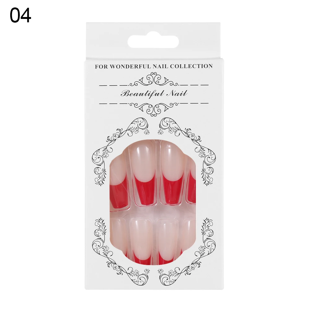 24 шт. Длинные накладные ногти балерины французский Красный дизайн ...