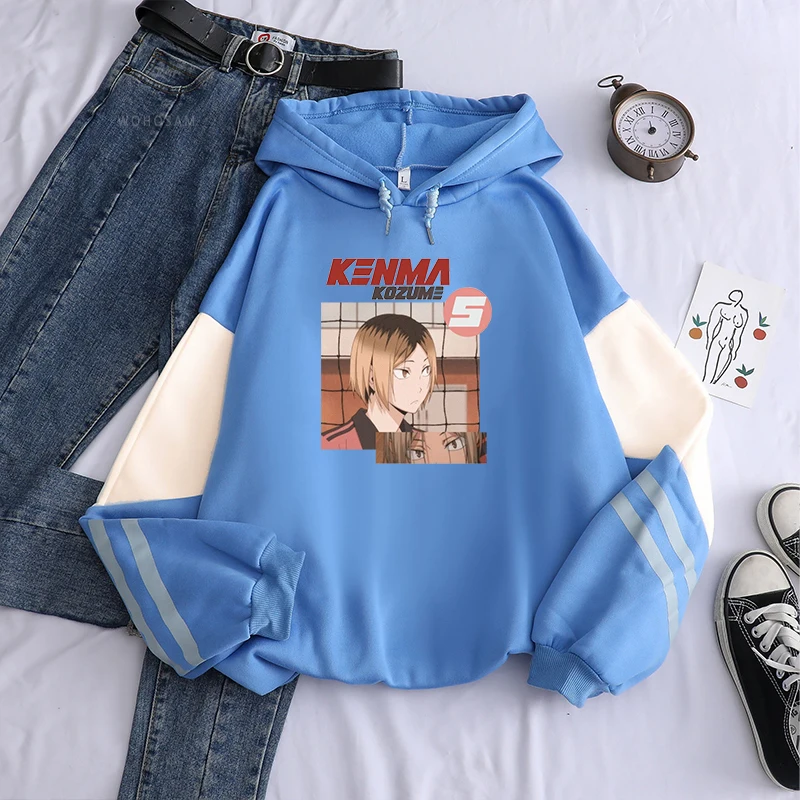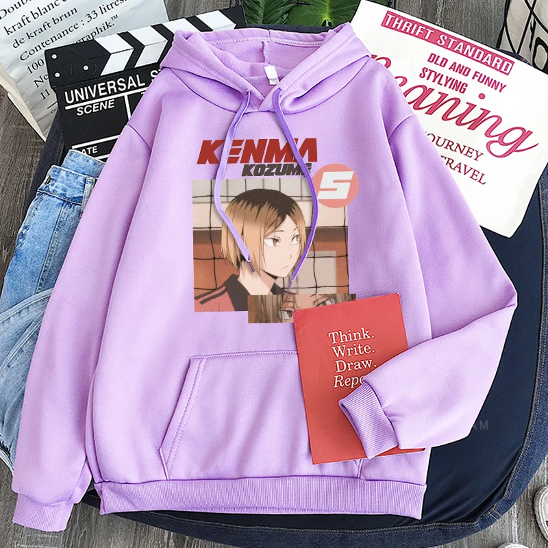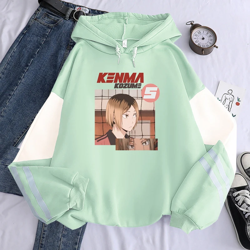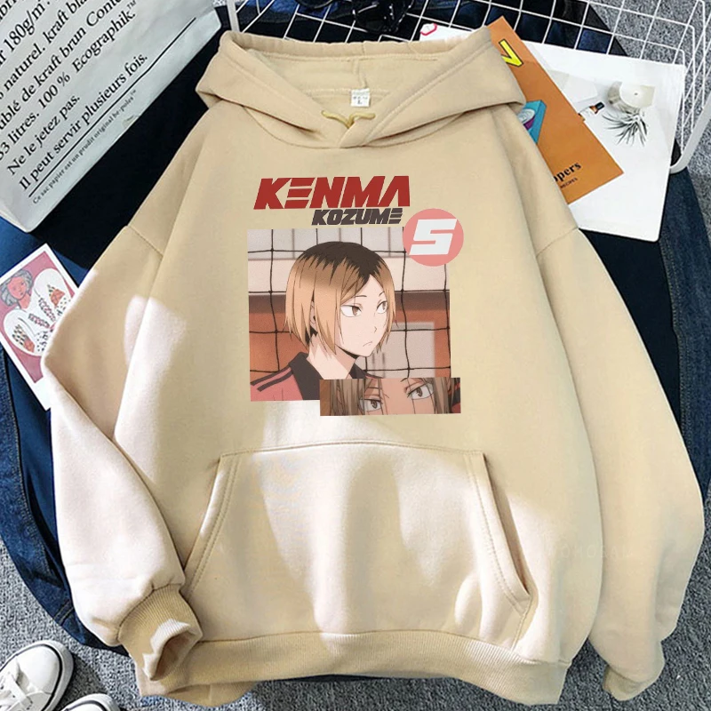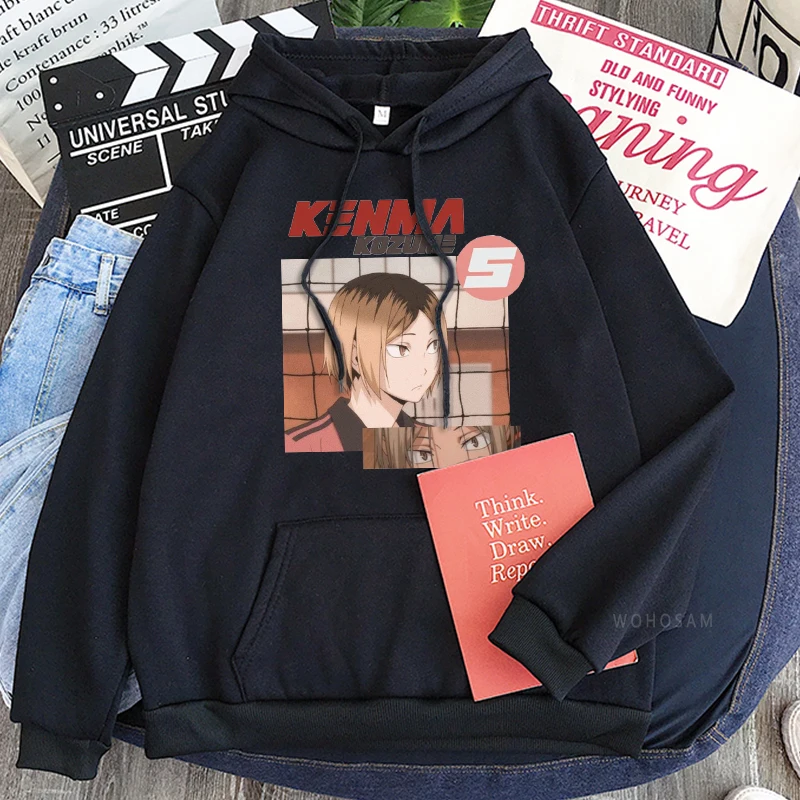 Толстовки в стиле аниме Харадзюку с принтом манга Haikyuu, мужские милые толстовки в стиле некома для старшей школы, кенма козуме, мультяшный волейбол, Детская уличная одежда, свитшоты