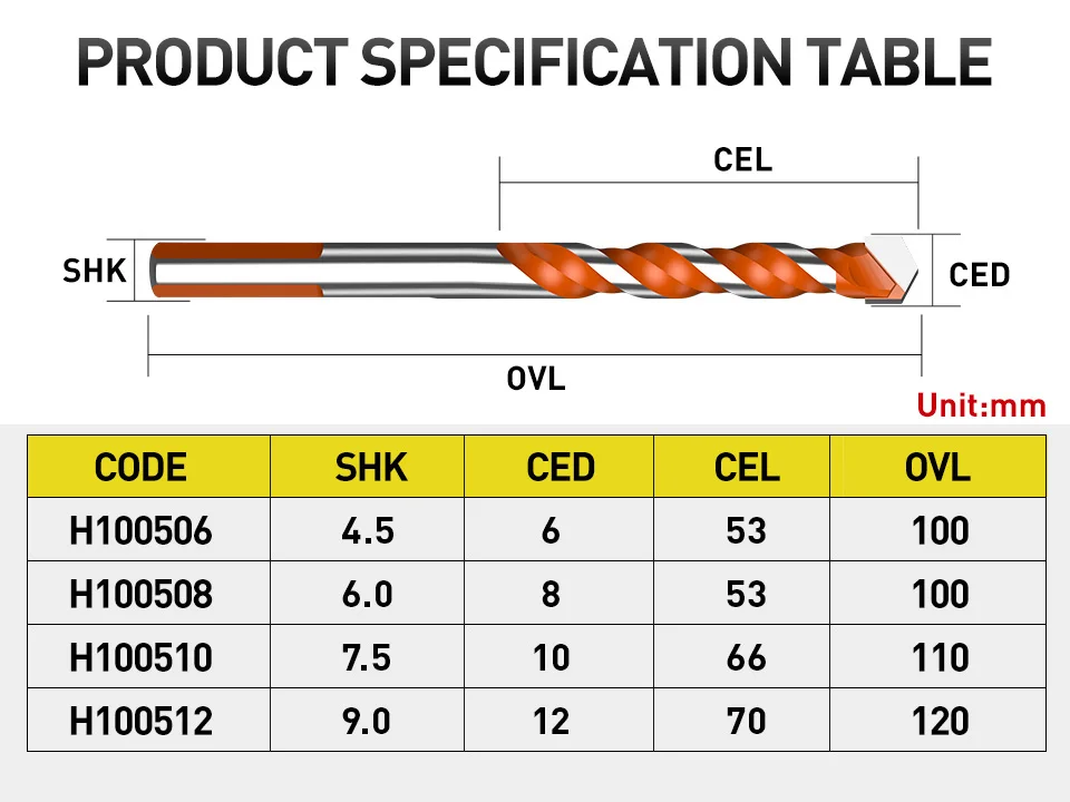 HUHAO сверло для керамической плитки, сверло для стекла, бетона, буровое долото для перфорации стен, Открыватель отверстий, многофункциональное ручное сверло, спиральное сверло