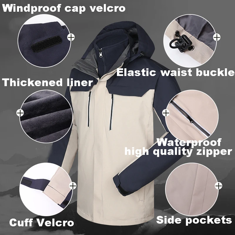 Зимний утолщенный теплый лыжный костюм, мужские уличные водонепроницаемые термальные комплекты для катания на лыжах, сноуборде, кемпинге, пеших прогулок, лыжная куртка и штаны