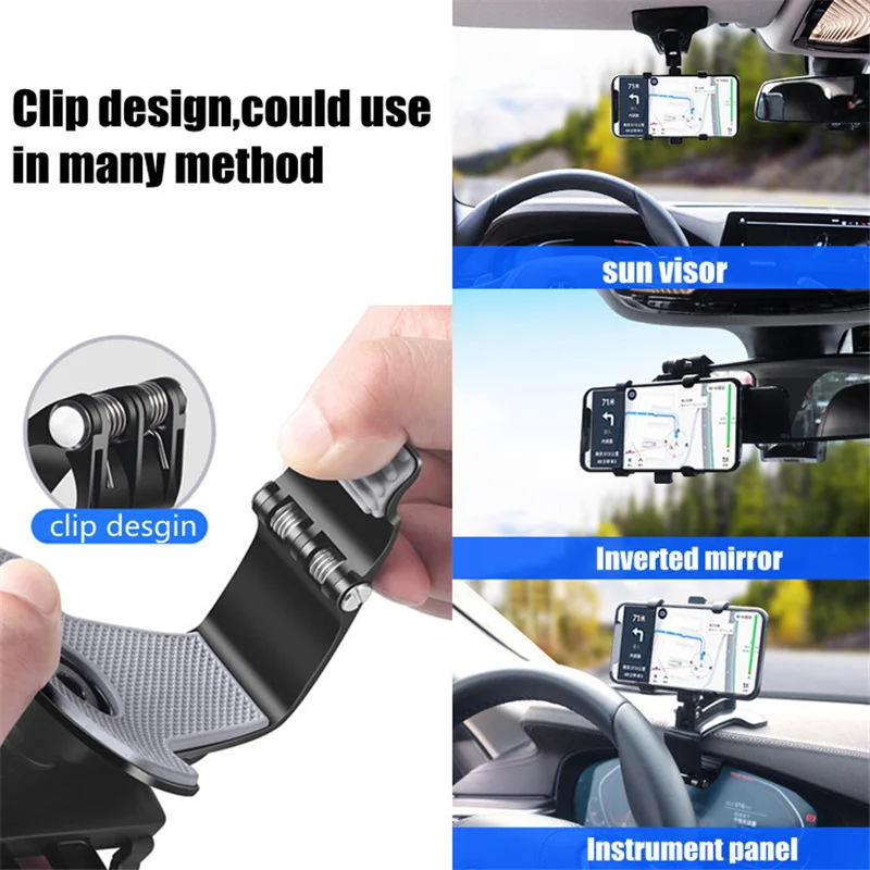 Автомобильный держатель для приборной панели, регулируемая подставка для мобильного телефона с поворотом на 360 градусов для зеркала заднего вида, GPS-навигации