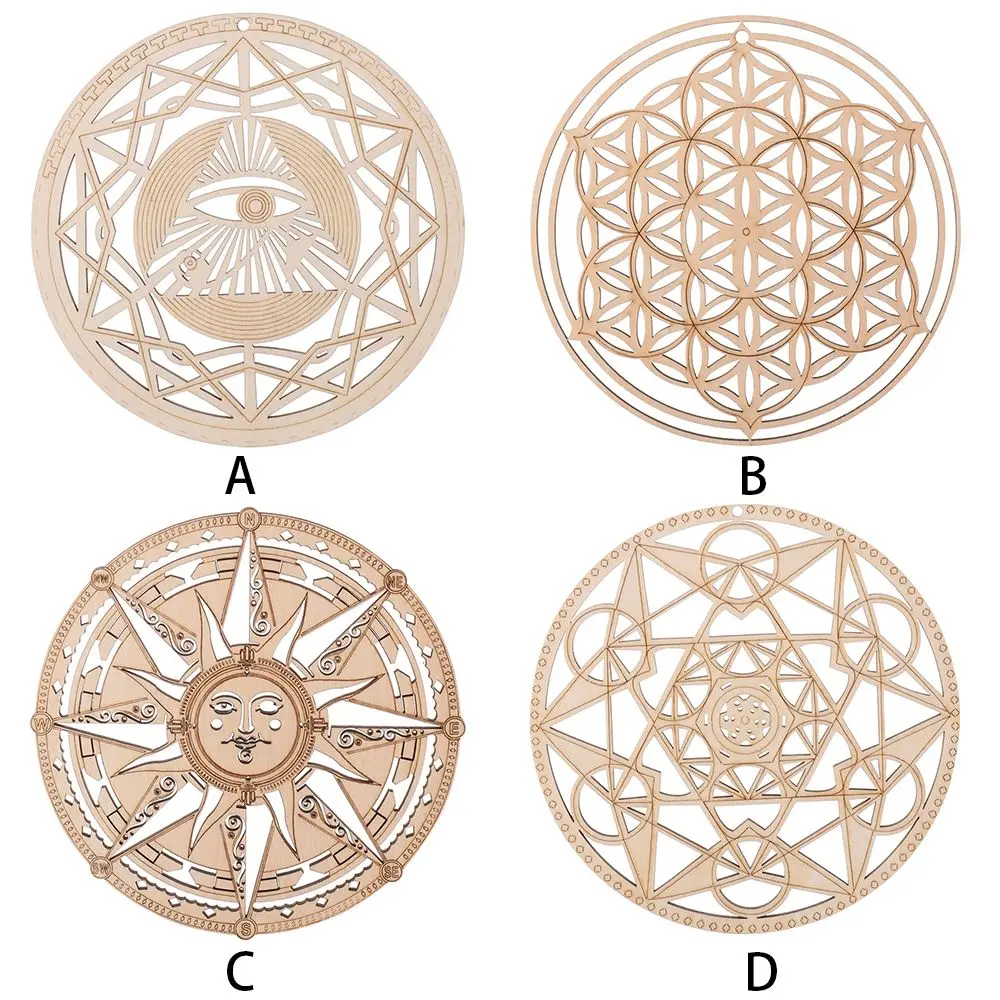 Хит продаж, круглая Священная геометрия, Хрустальная сетка, украшения для дома, деревянные настенные украшения, Настенный декор, подвесные картины, деревянный знак