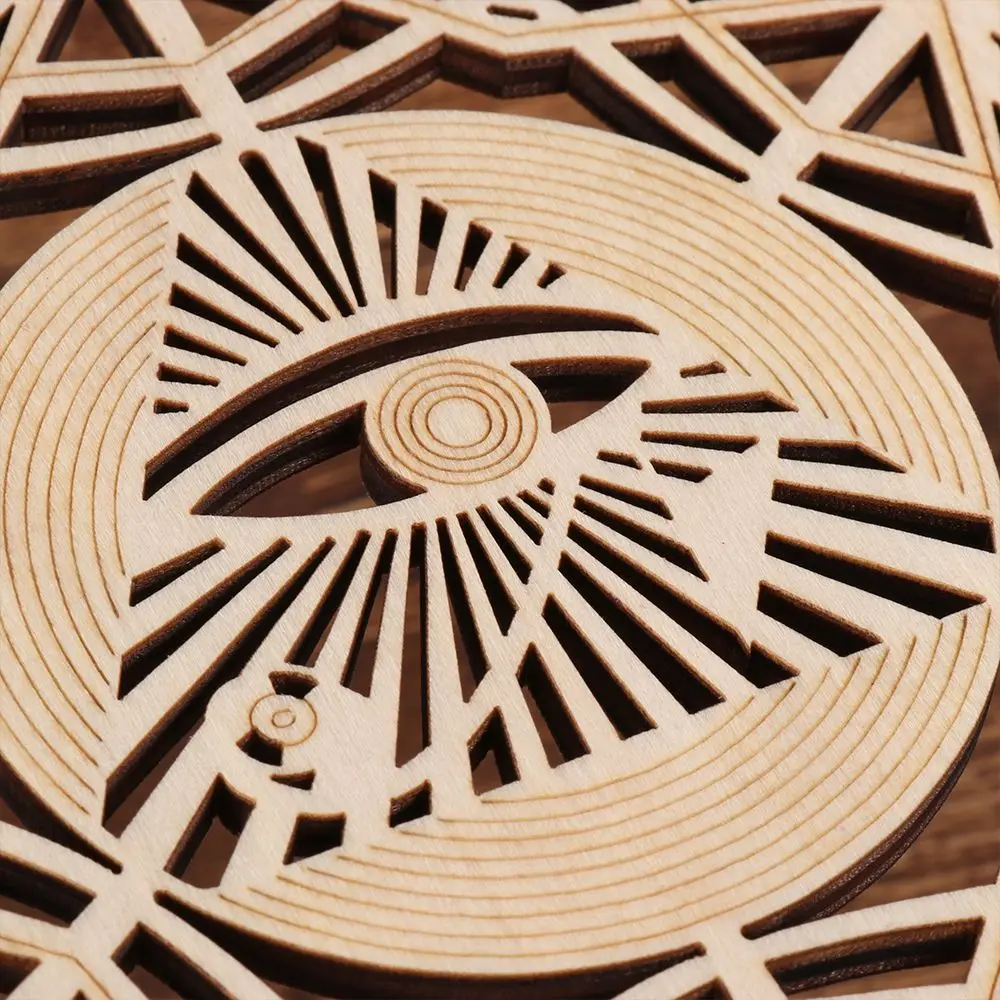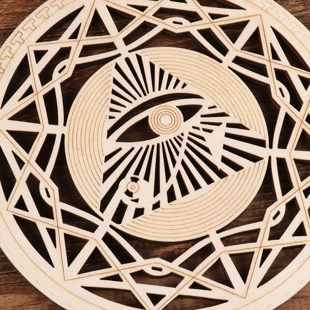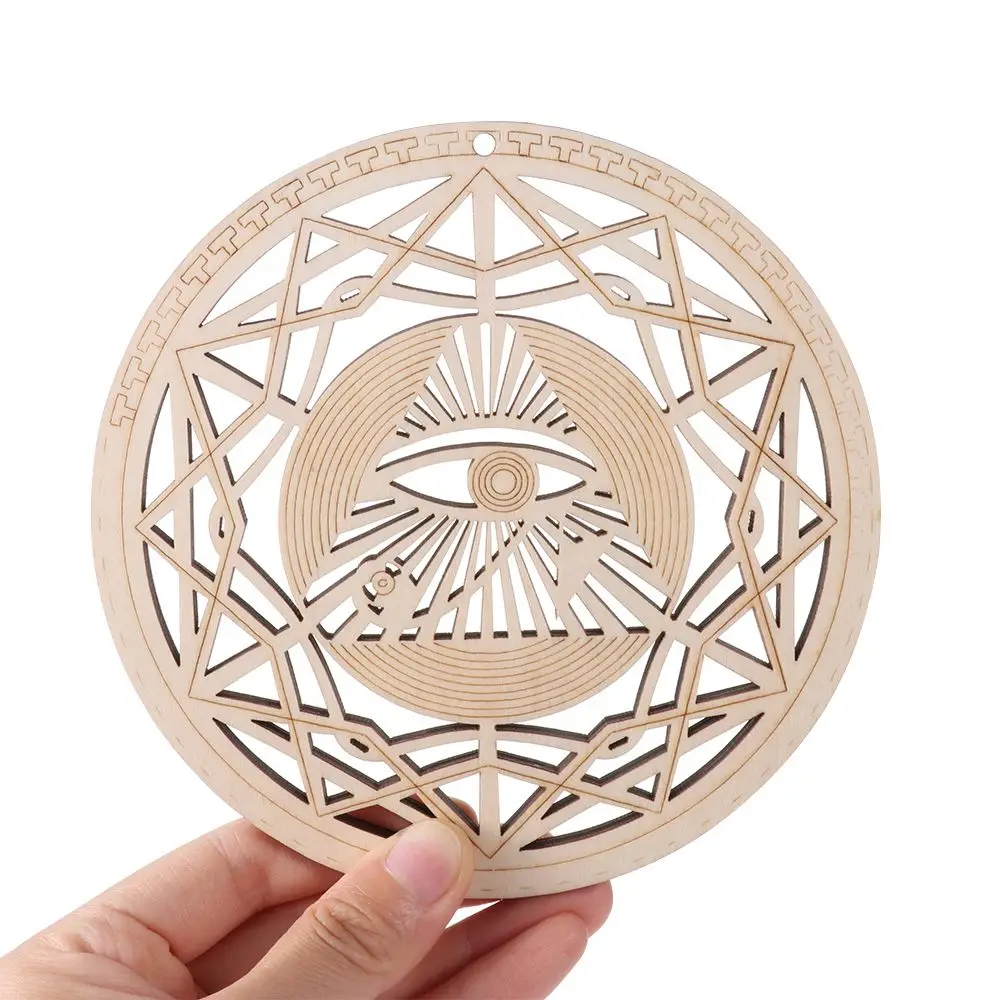 Название: деревянные подвесные работы Диаметр: 14 см Материал: украшение дома Стиль: Глаз Гора, цветок жизни, солнечный цветок, кубик плюсневой кости Упаковочный лист: 1 * подвесное художественное оформление