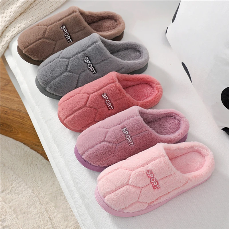 Зимние женские теплые домашние тапочки, плюшевые тапочки для пар, т...