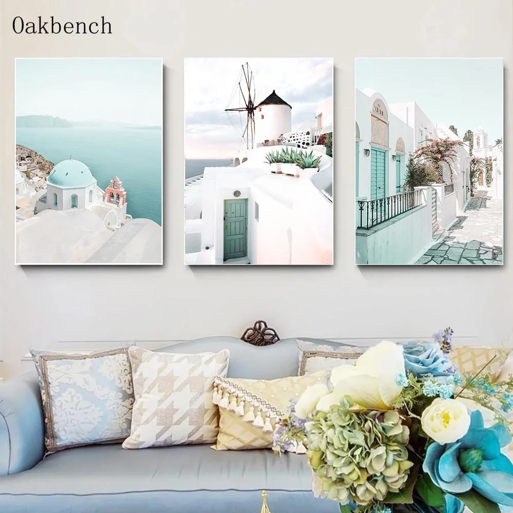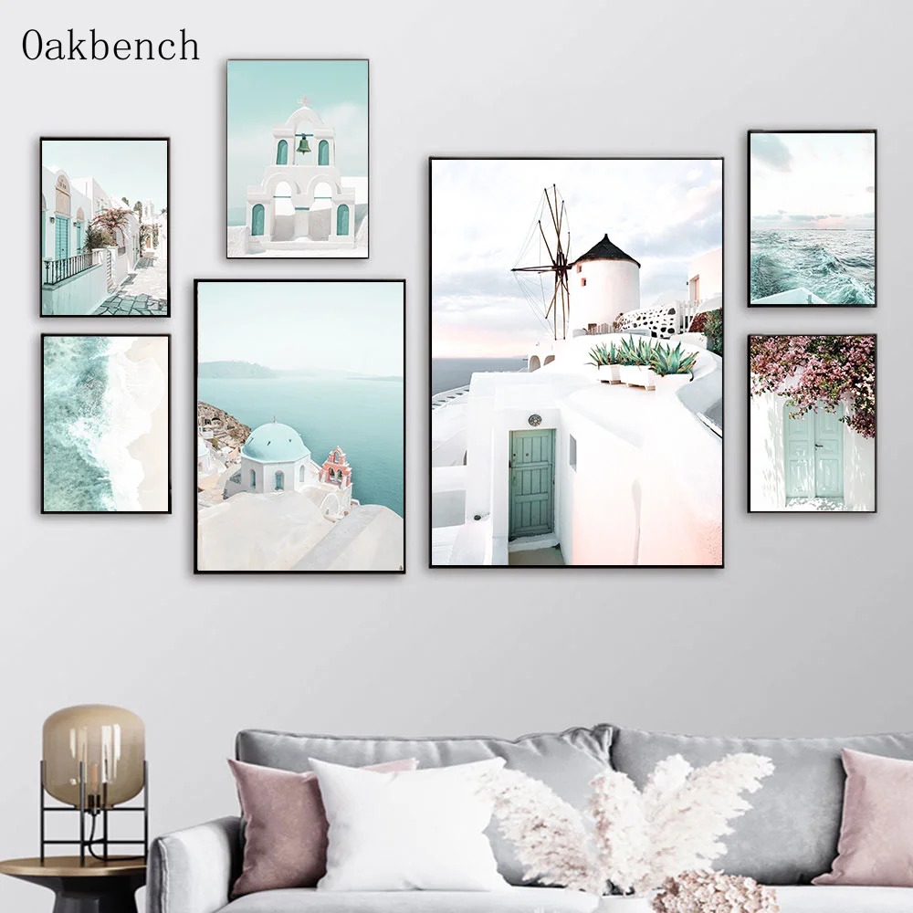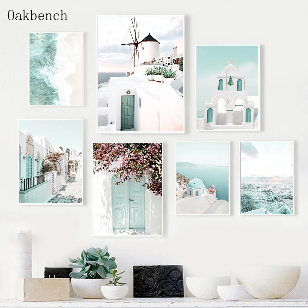 Постер на стену в скандинавском стиле с изображением Морской Береговой архитектуры, настенные картины на холсте с цветами и дверью, декор для гостиной в скандинавском стиле