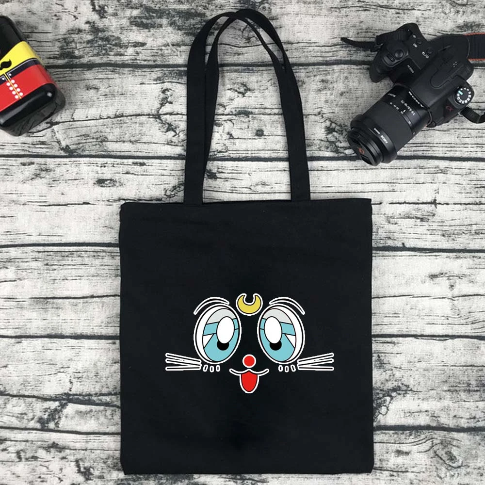 Сумка для покупок, женская сумка на плечо Ulzzang Harajuku, тканевые сумки, шоппер, женские многоразовые сумки, милые забавные сумки-тоут