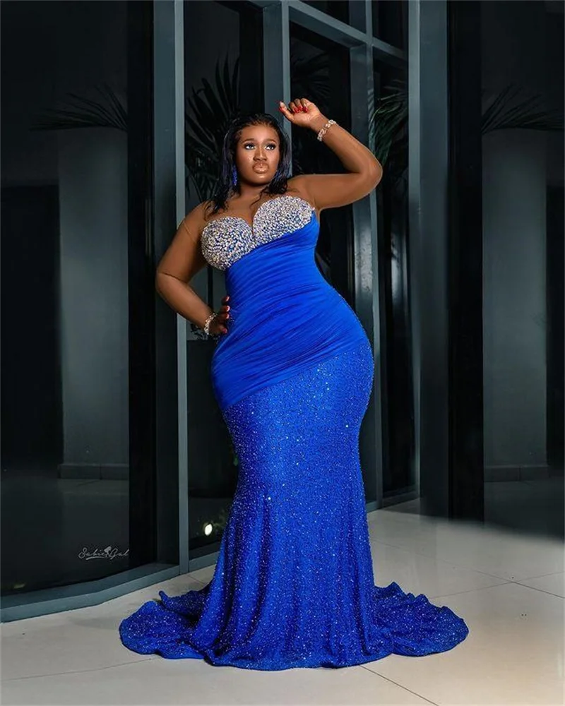 Женское вечернее платье-русалка, темно-синее платье для выпускного вечера, расшитое бисером, с кристаллами, на заказ
