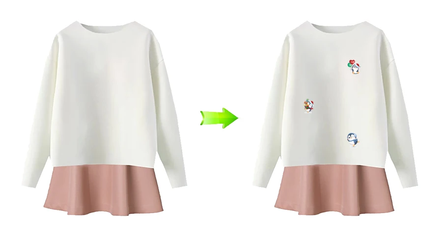 Для теплопередающей машины1, Установите температуру тепловой пресс-машины.2, Разложите одежду на гладильной доске.3, Включить режим теплопередачи.4, Крепко надавите руками на 10 секунд.5, Убрать руки, охладить, разорвать мембрану.6, Узоры присутствуют на одежде.
