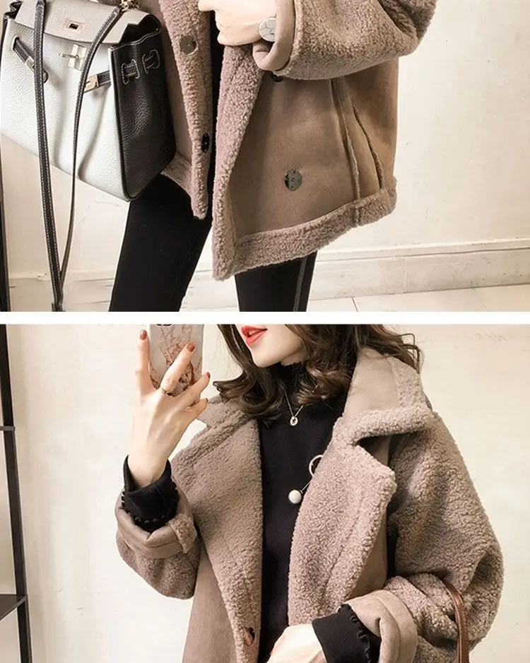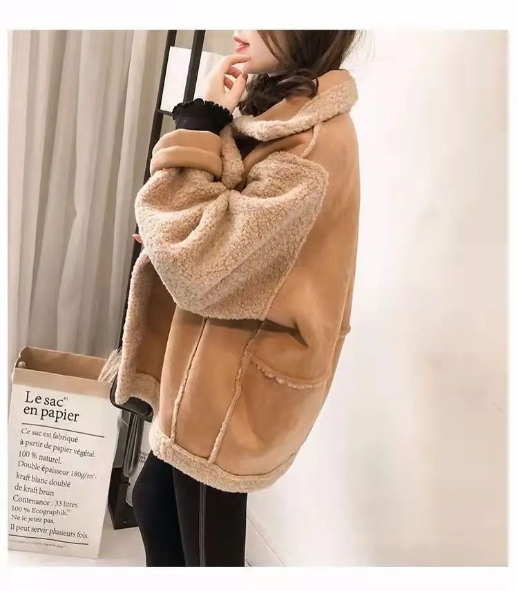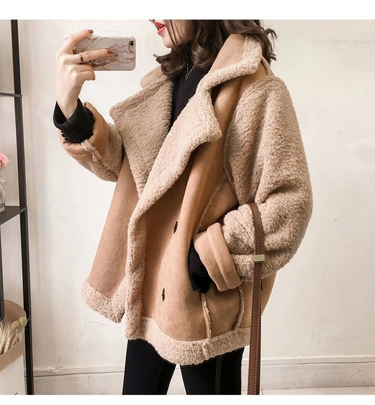 Осень-зима 2021, Женское пальто из овечьей шерсти, цельный утепленный жакет из овечьей шерсти, свободное повседневное теплое пальто большого размера, Размеры S - 4XL