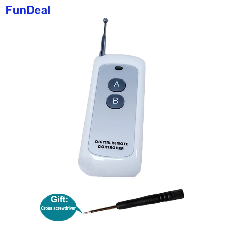 Характеристики пульта дистанционного управления:Рабочая частота: 433,92 МГцМощность по 23A 12V литиевая батарея(Батарея входит в комплект),Материал: ПВХ.Кнопка: 2 кнопкиРазмер: 92 мм x 40 мм x 14 мм;Рабочее напряжение: 12 В;Рабочий ток: 12 мАМощность передачи: 10 мВтРежим модуляции: ASK (AM).Тип кодирования: обучение.Расстояние передачи: 200 м.