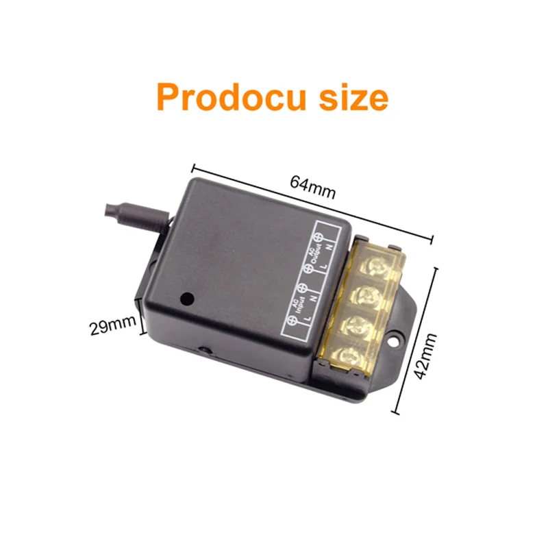 4, Режим задержки времени:Нажмите кнопку дистанционного управления, реле подключается, от когда отпустите кнопку дистанционного управления, после 5s или 10s или 15s или 20s, реле отключается автоматически.5,Автоматическое включение при включении:Когда источник питания, реле подключается.