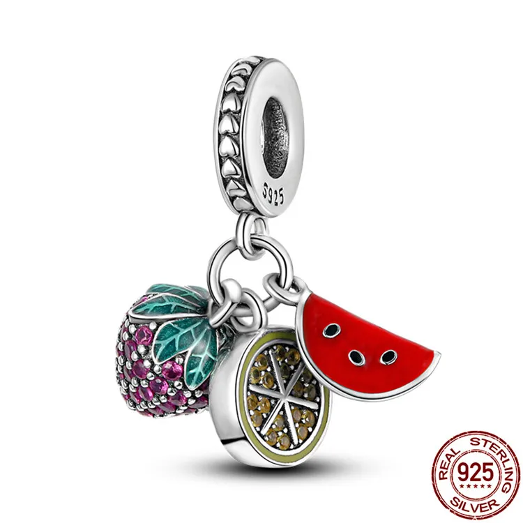 Бусины-подвески лимон из серебра 925 пробы с клубничным арбузом, подходят для оригинального браслета Pandora, подвеска для ожерелья, ювелирные изделия