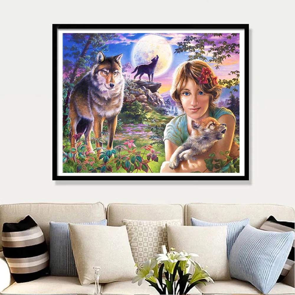 Бриллиантовая картина для девочек, полная вышивка, Квадратные бусины, волк, животное, вышивка крестиком, мозаика, подарок ручной работы