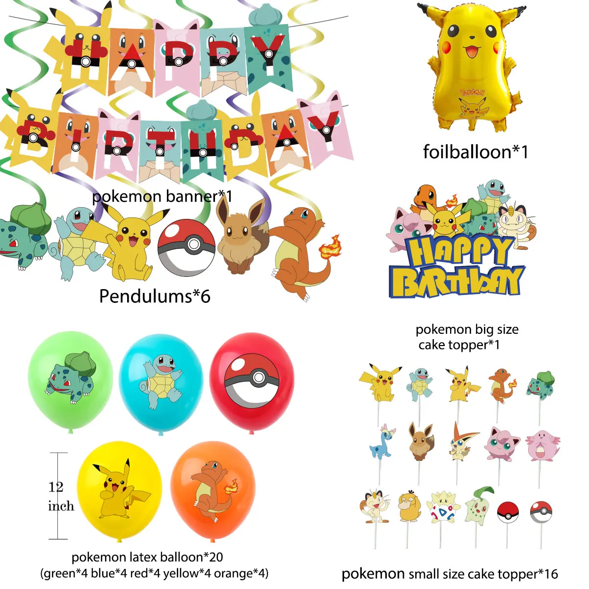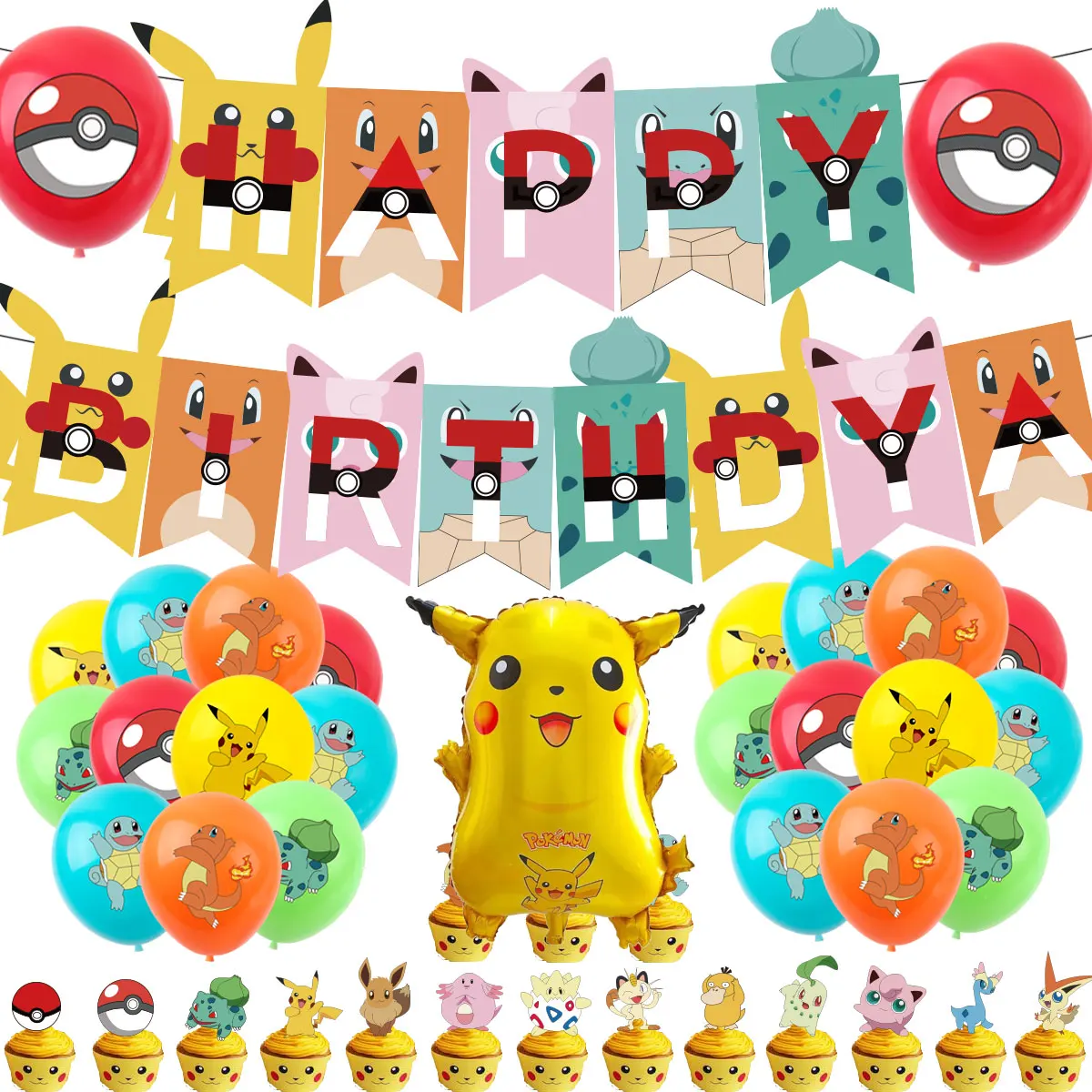 Набор покемонов на день рождения, тематическое украшение, Пикачу, Детские Мультяшные праздничные одноразовые принадлежности, детские рождественские подарки