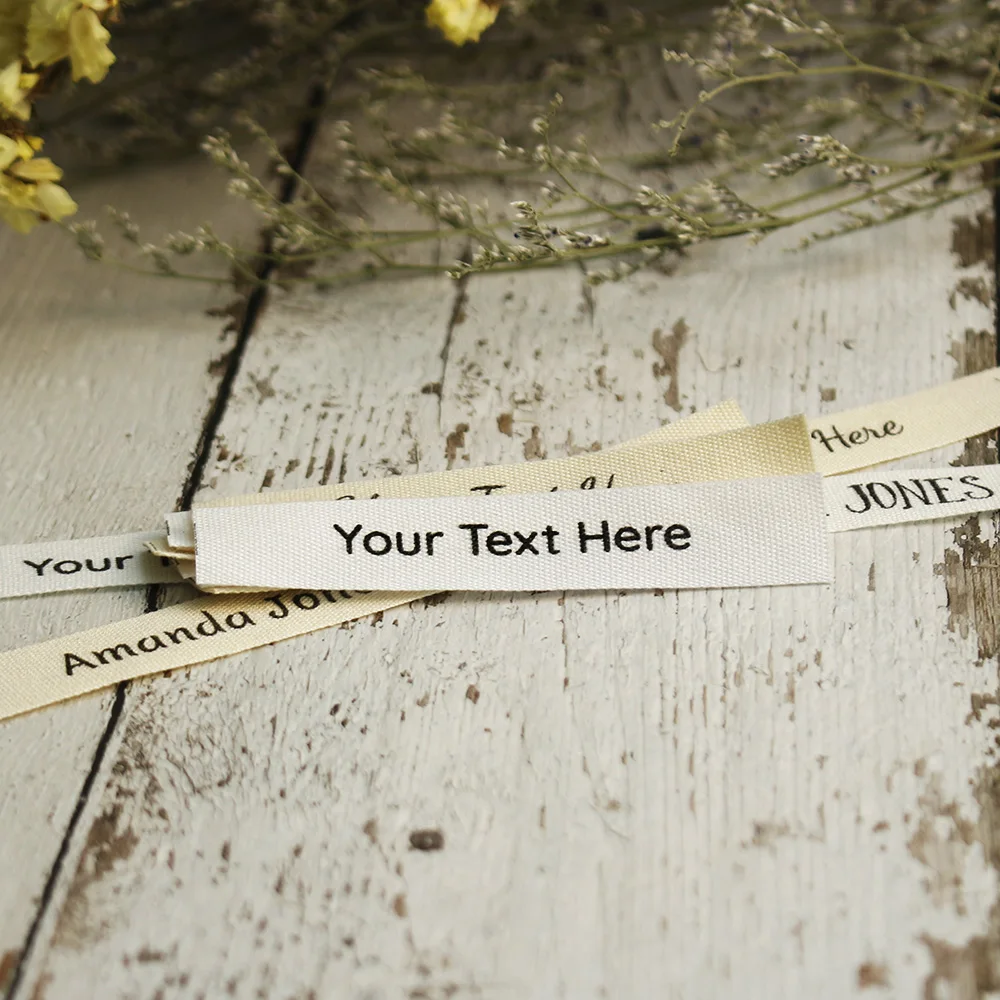 12x70 мм Хлопок с логотипом или текстом шитье аксессуары Этикетка, бирки для вязаных изделий, на заказ, персонализированная, технические, Подарочные бирки