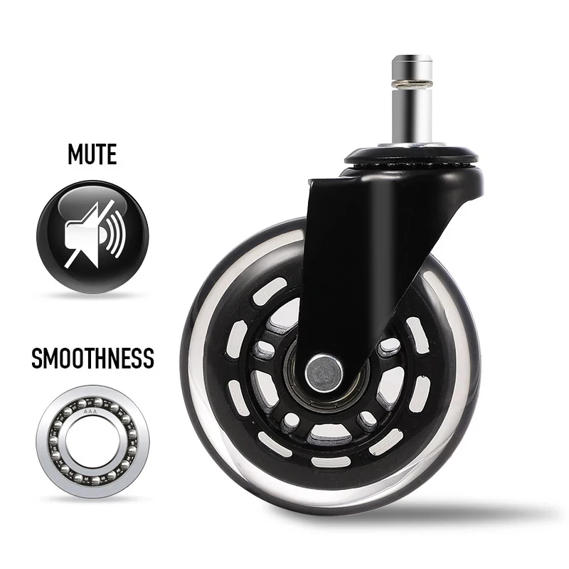 В отличие от пластиковых роликов, эти высококачественные мягкие полиуретановые колеса не повреждают пол любого типа. Эти колеса прослужат дольше, чем ваши средние колесики для офисного кресла.
