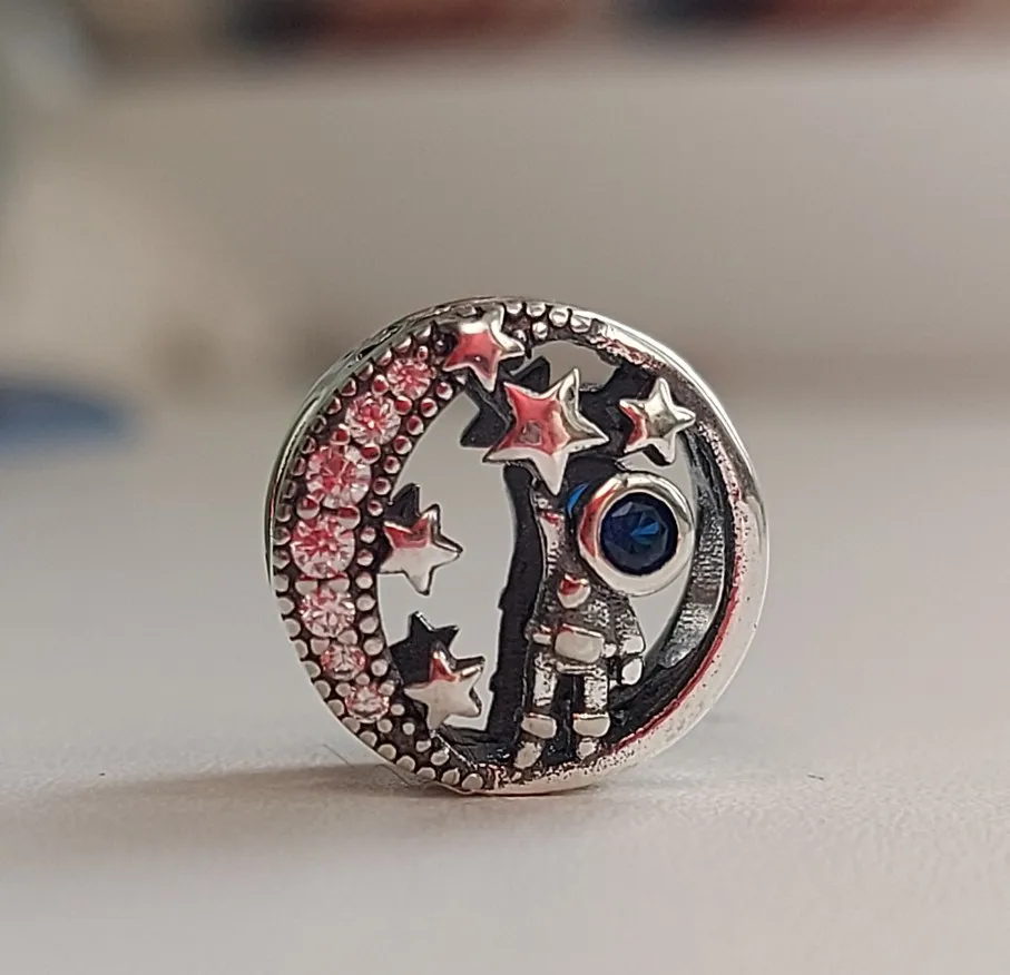 Новый чемодан из стерлингового серебра 925 пробы из трех частей для самолета и астронавта, подходит для изготовления оригинальных браслетов Pandora, модные украшения сделай сам