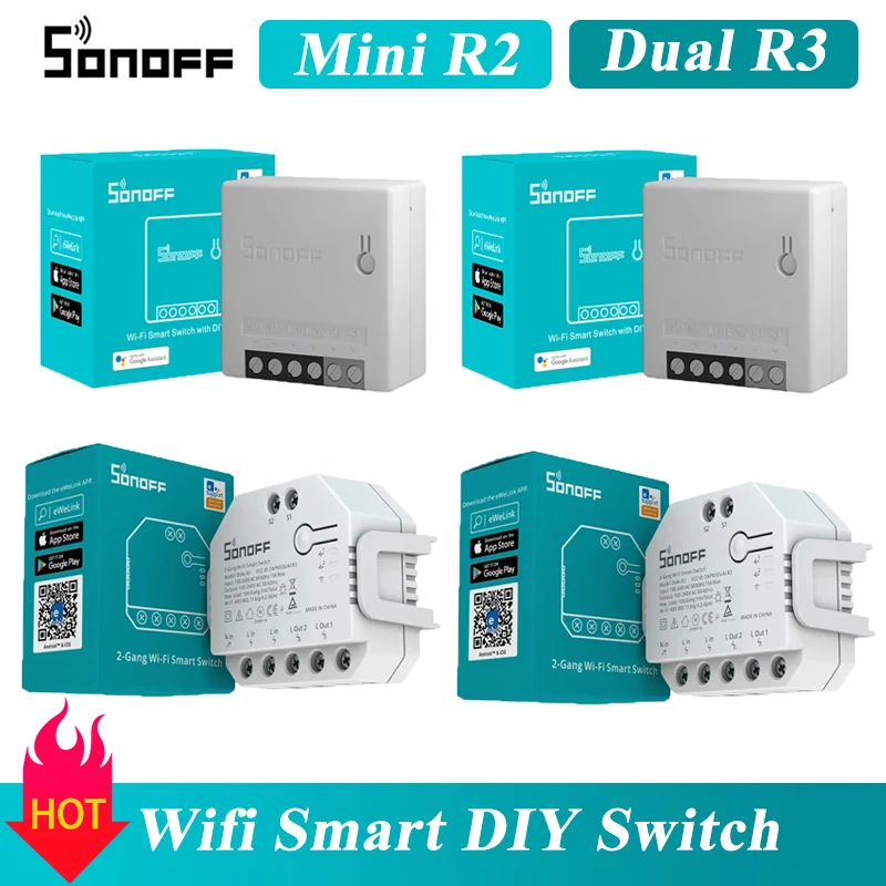 Смарт-выключатель SONOFF MiniR2 Dual R3, 2 клавиши, Wi-Fi, для самостоятельной сборки, модули реле, дистанционное управление через приложение eWelink, работает с Alexa Google Home