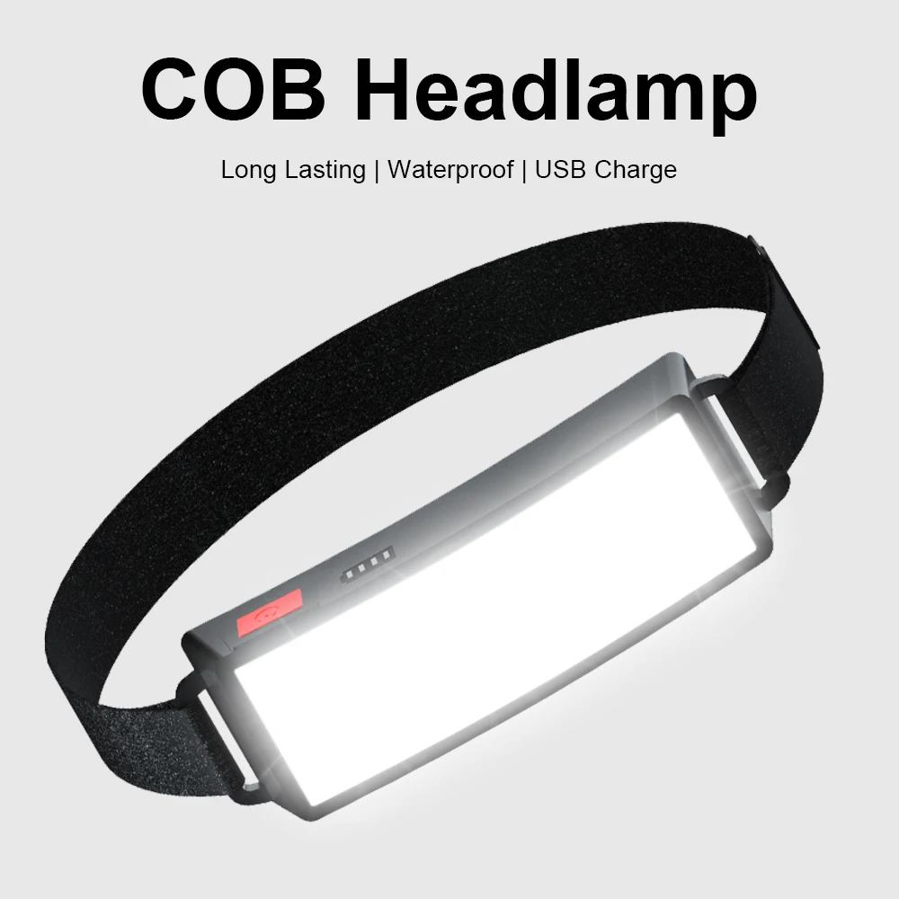 Мощный налобный фонарь, портативный светодиодный налобный фонарь COB для кемпинга и рыбалки, водонепроницаемый налобный фонарь с USB-зарядкой, налобный фонарь с монолитным блоком светодиодов