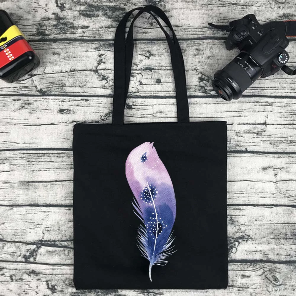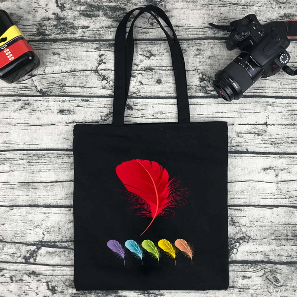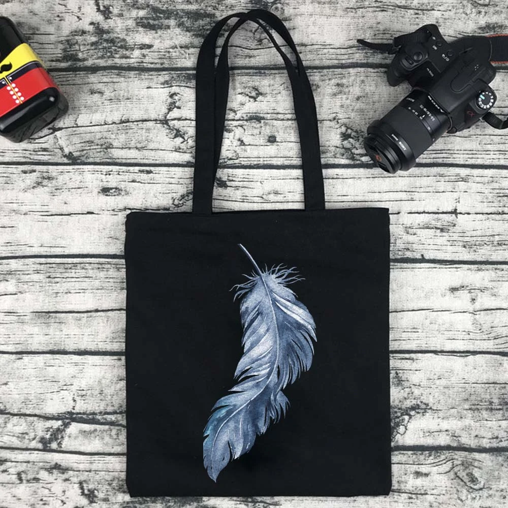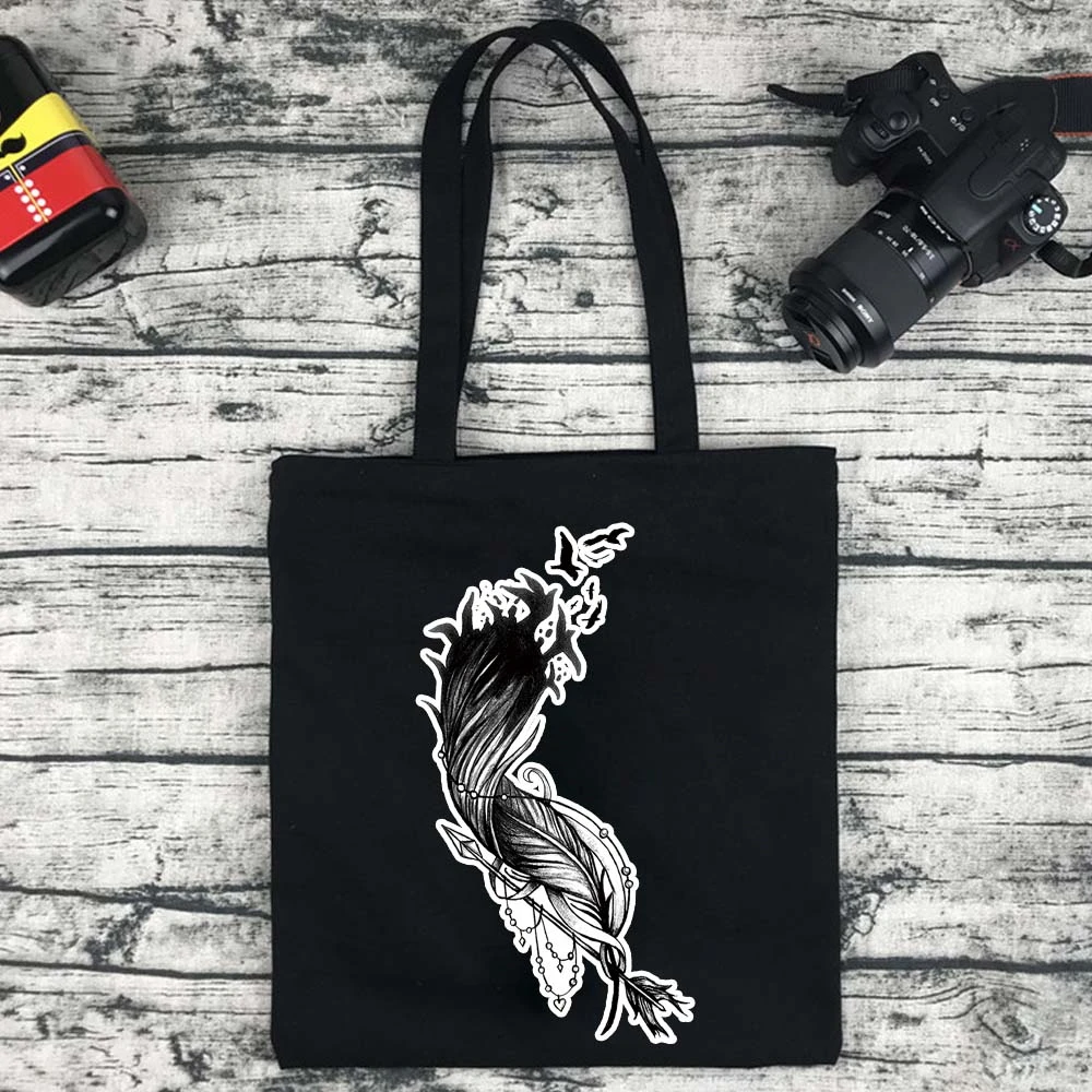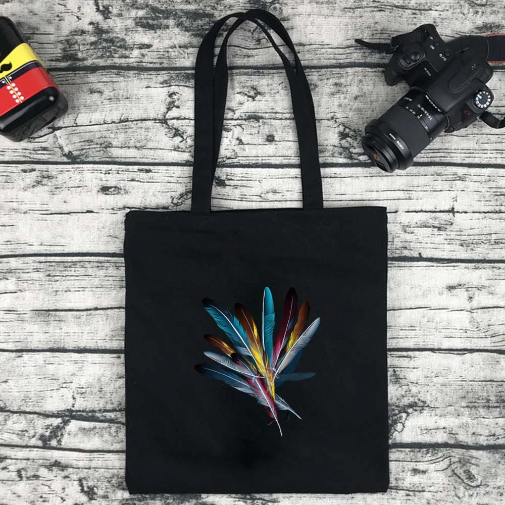 Сумка-шоппер в стиле Харадзюку, Женская холщовая Сумочка на плечо, экологически чистая вместительная сумка с узором в виде перьев ольччан