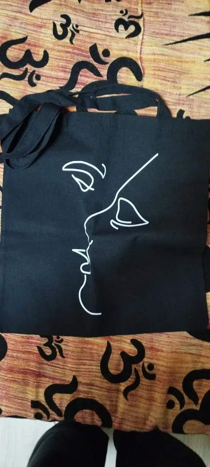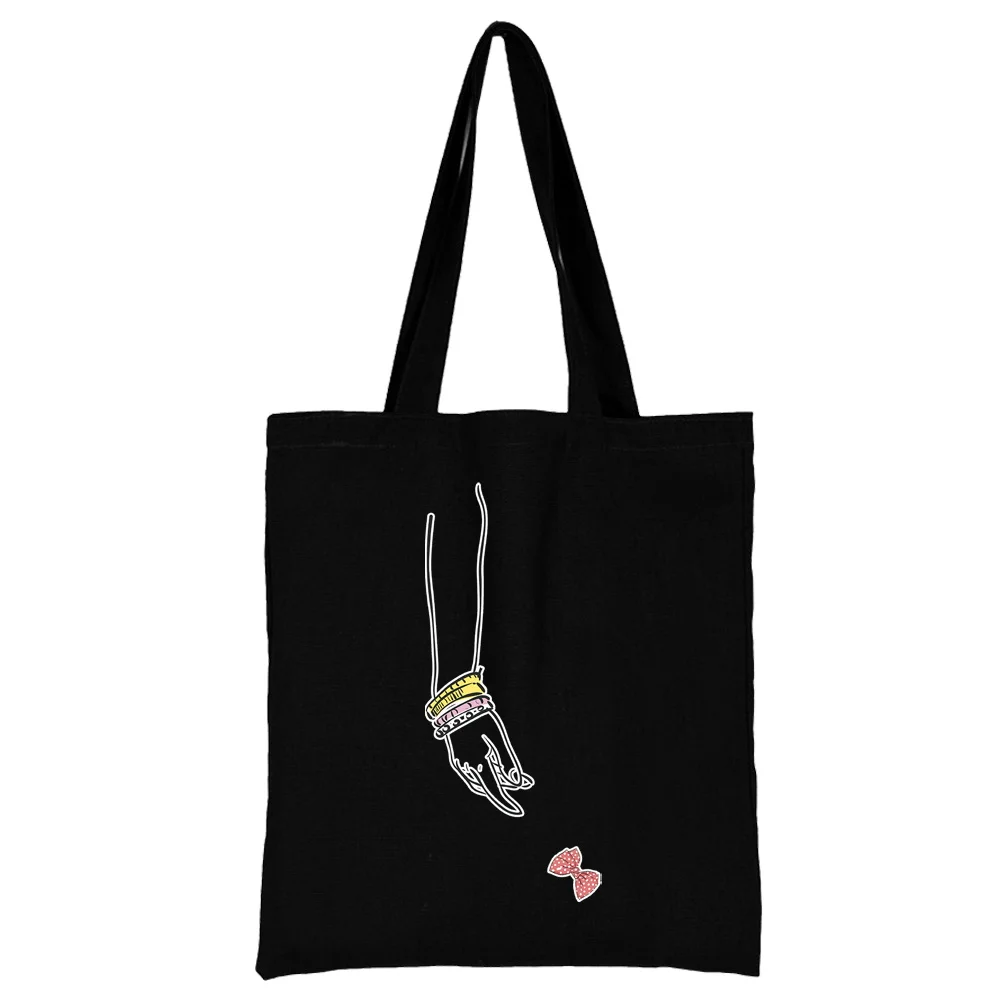Женские сумки для покупок, модная черная сумка с принтом, Холщовая ...