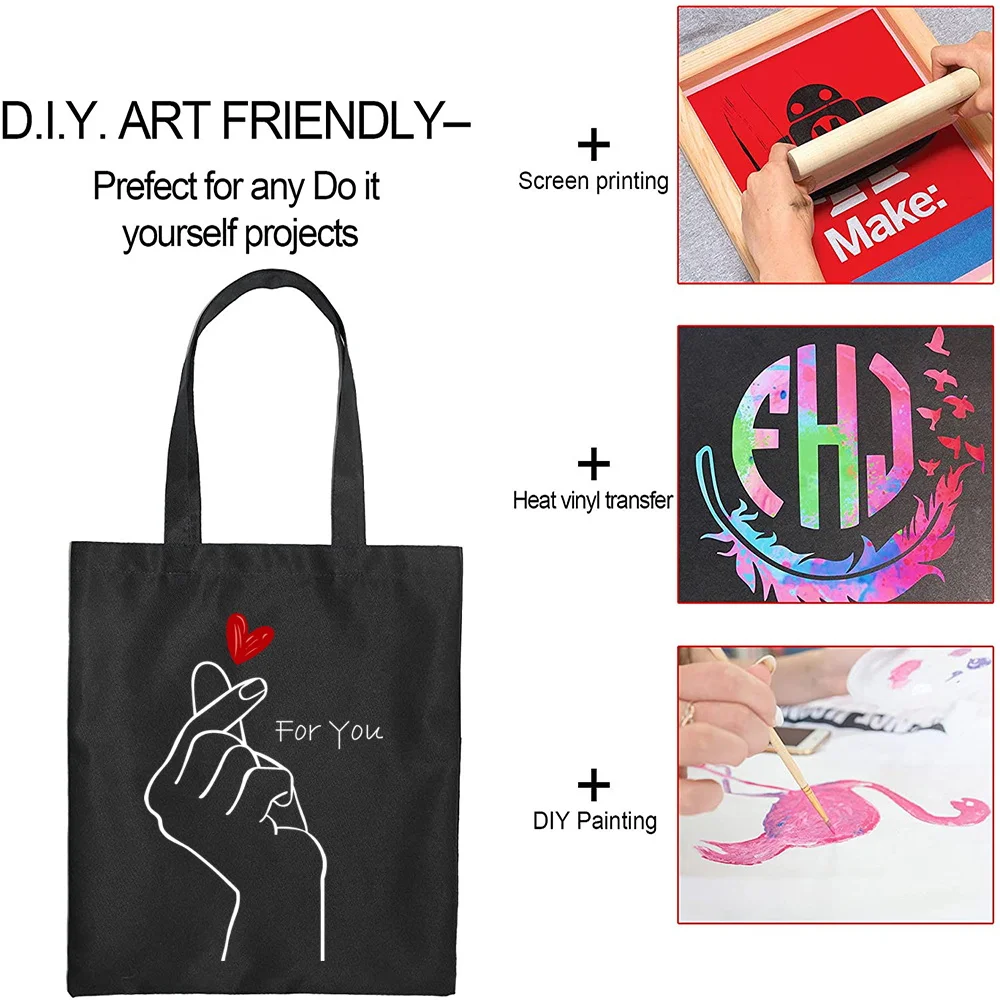 Оптовая продажа, 100 шт.лот, прочная черная Хлопковая сумка с ручка...