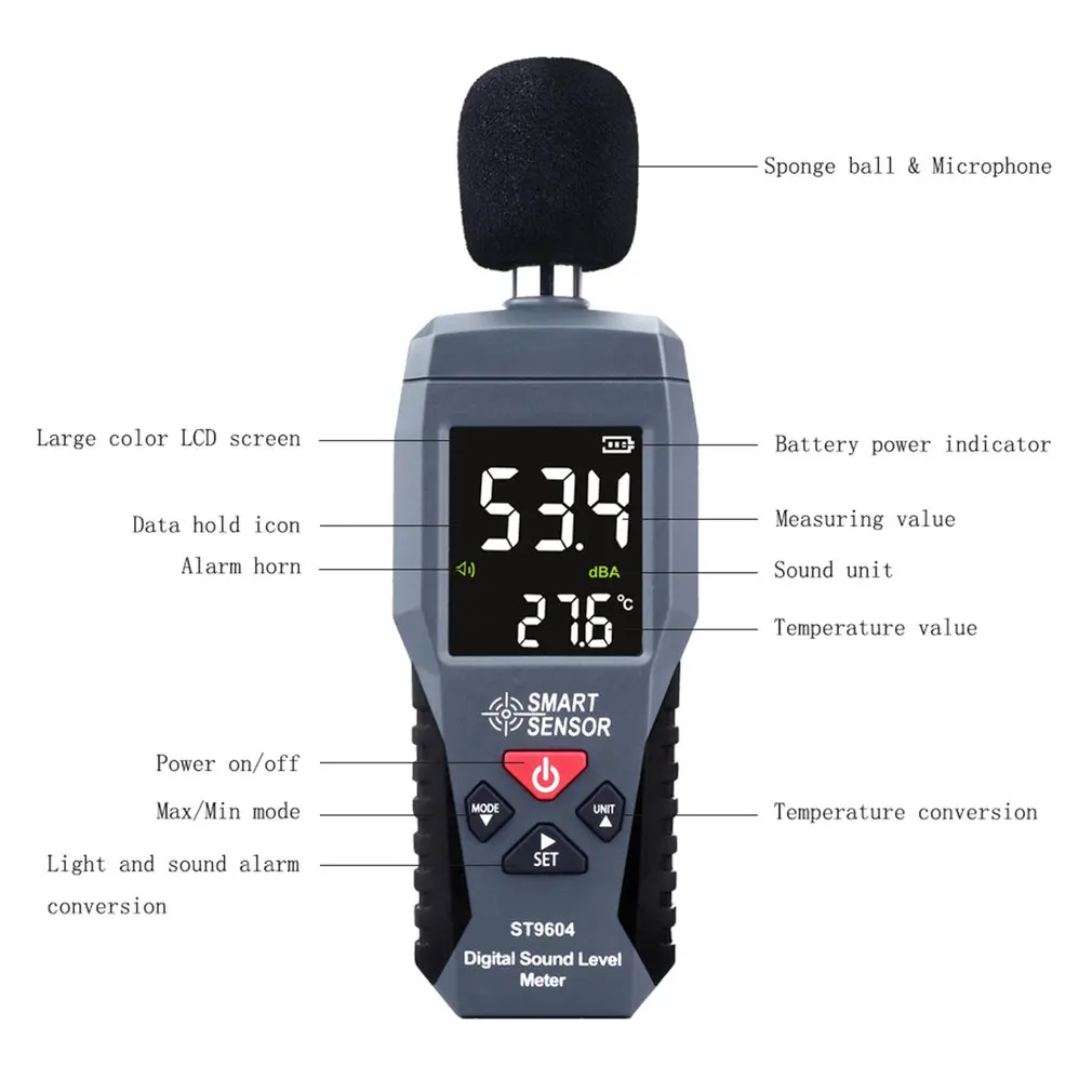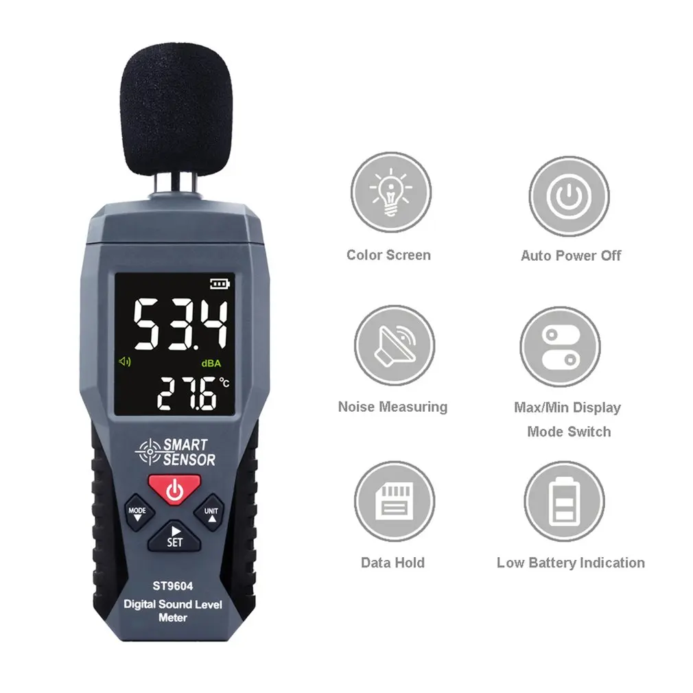Цифровой шумомер, измеритель уровня звука, детектор децибел, диагностический инструмент Smart Sensor ST9604, 30-130 дБ