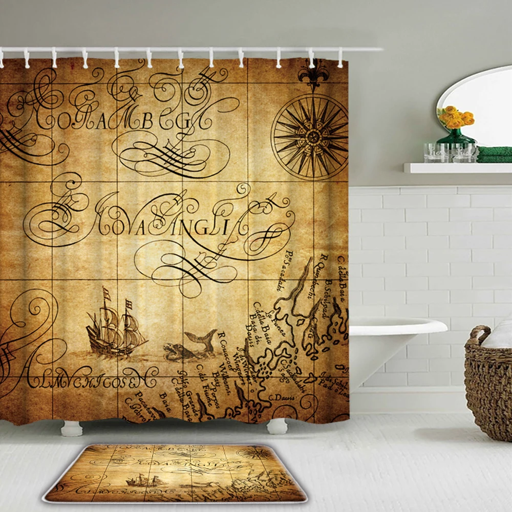 Занавеска для душа пиратский корабль с крючками, водонепроницаемая ...