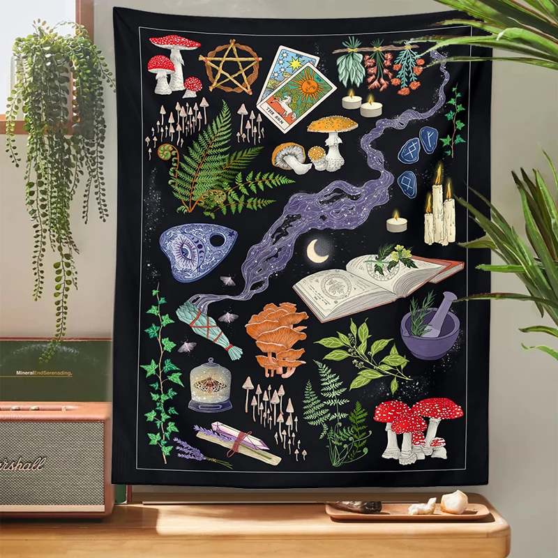 бохо декор украшения для комнаты декор для комнаты гобелен на стену Ботанический гобелен с грибами, настенная подвеска, Волшебная ведьма, руки, луна, звездное Психоделическое ведение, бохо, настенное украшение для дома