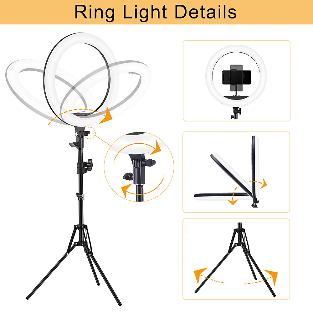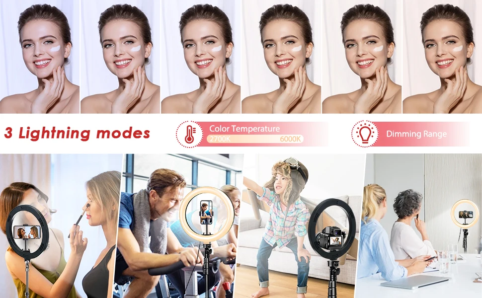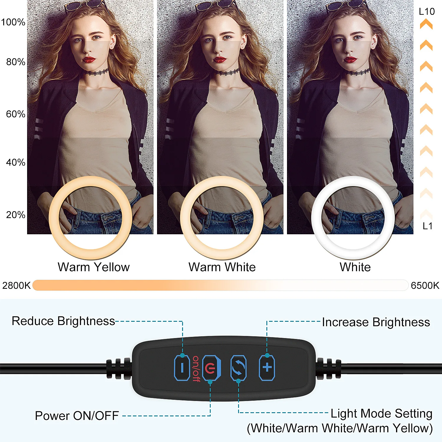 Кольцевой светильник для селфи, 10 дюймов 26 см со штативом, LED лампа с регулируемой яркостью для видеосъемки, подходит для потокового видео YouTube